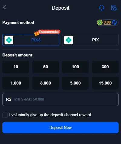 - Open the Deposit section from the main menu.